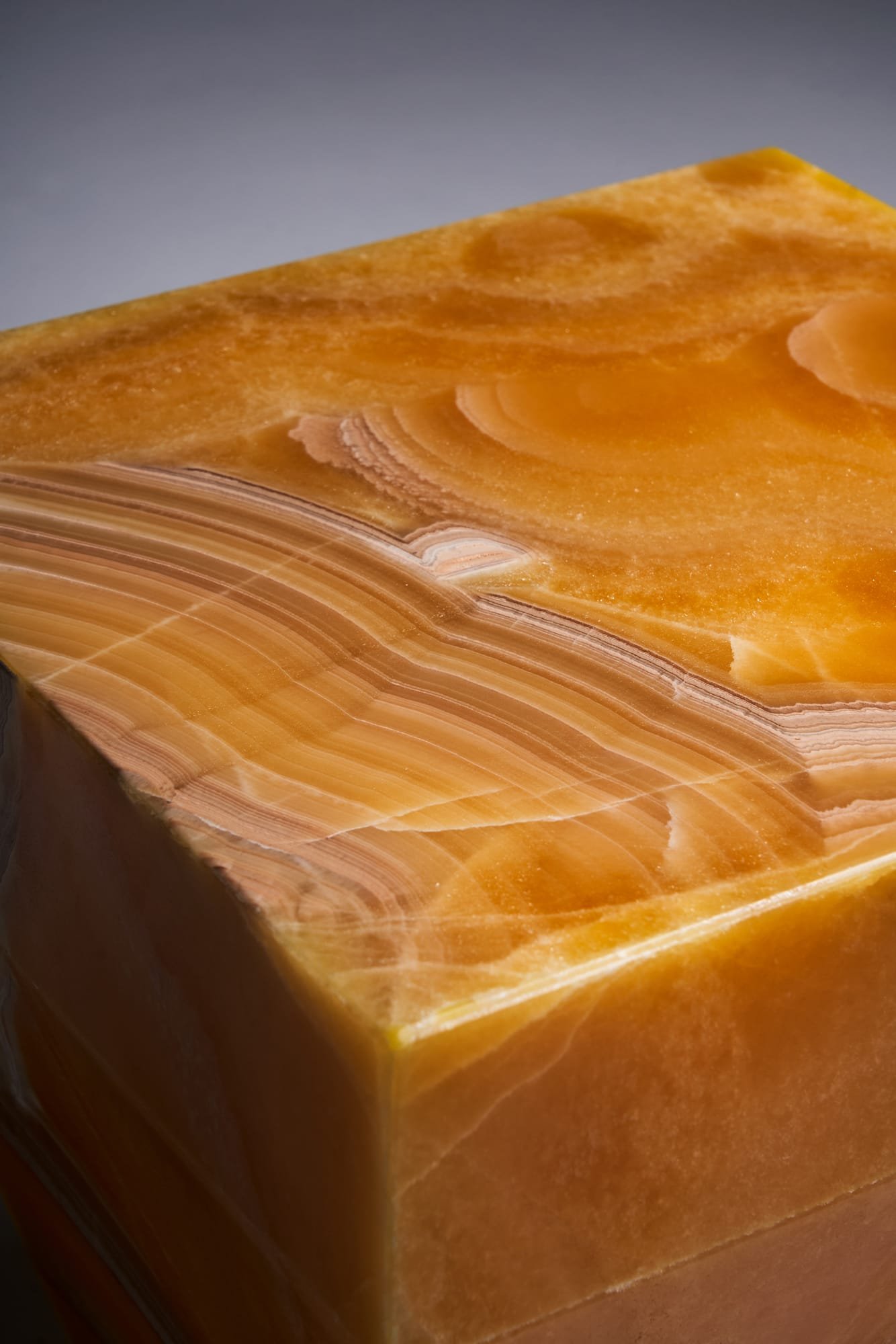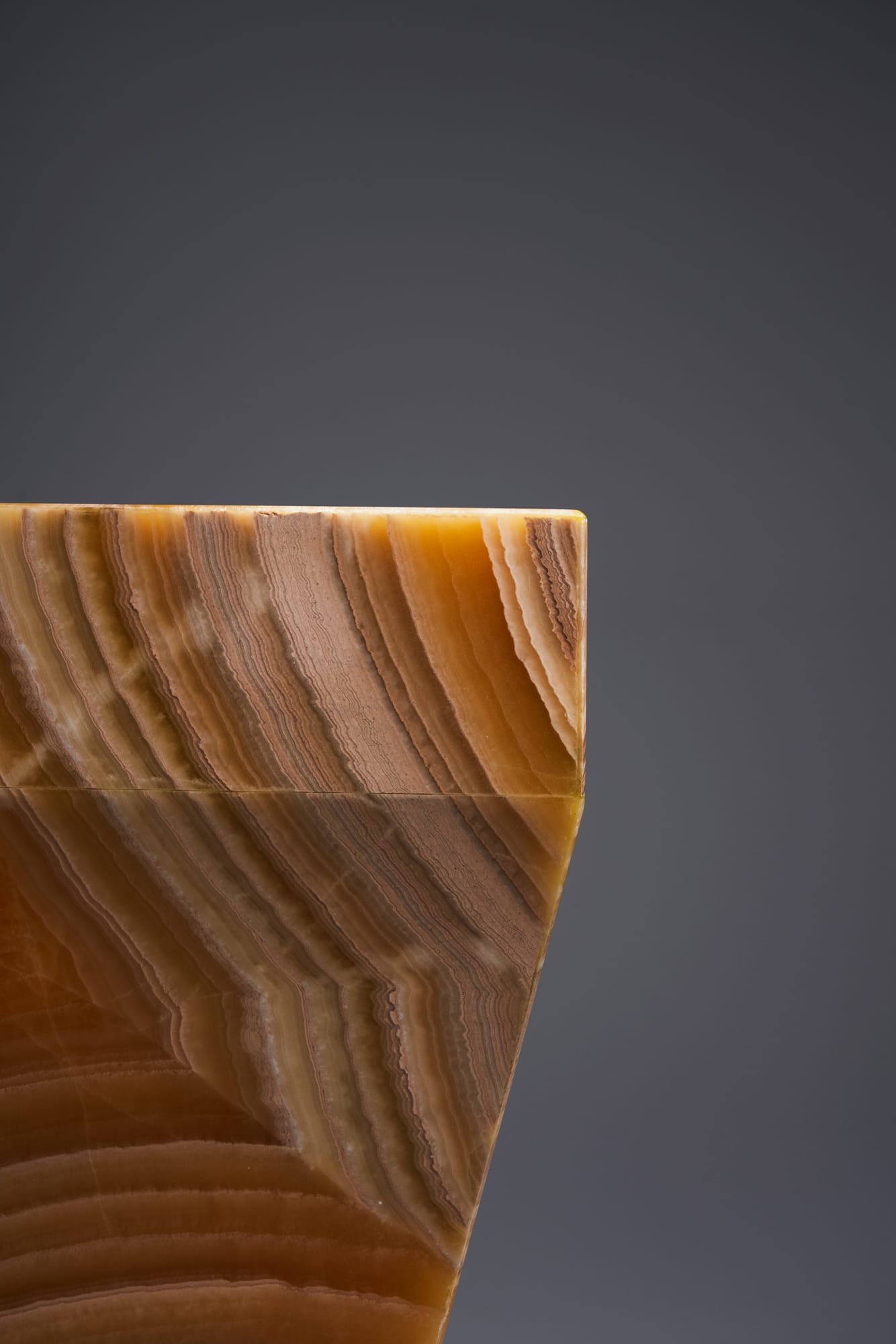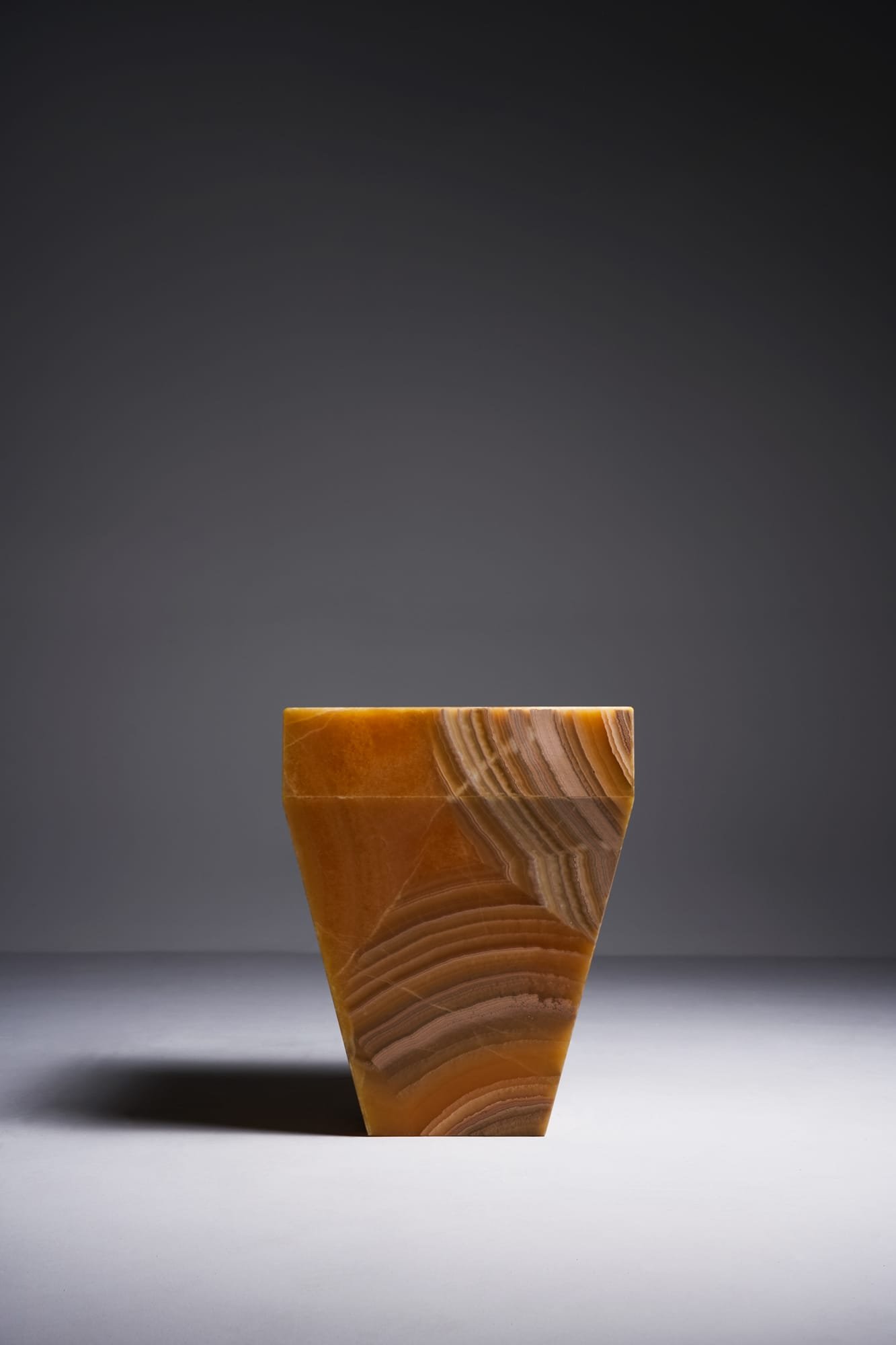 Der Shaper aus Onyx Miel verbindet warme Farbigkeit mit skulpturaler Eleganz. Die honigfarbenen Schattierungen und die natürliche Lichtdurchlässigkeit des Steins verleihen ihm eine ruhige Ausstrahlung und eine besondere Tiefe. Der Shaper fügt isch harmonisch in unterschiedliche Raumkonzepte ein – ob im Wohnbereich, Schlafzimmer oder Eingangsbereich. Mit seinen 2 bis 2.5 cm starken Onyxplatten ist er nicht nur visuell hochwertig, sondern auch in der Verarbeitung konsequent durchdacht.