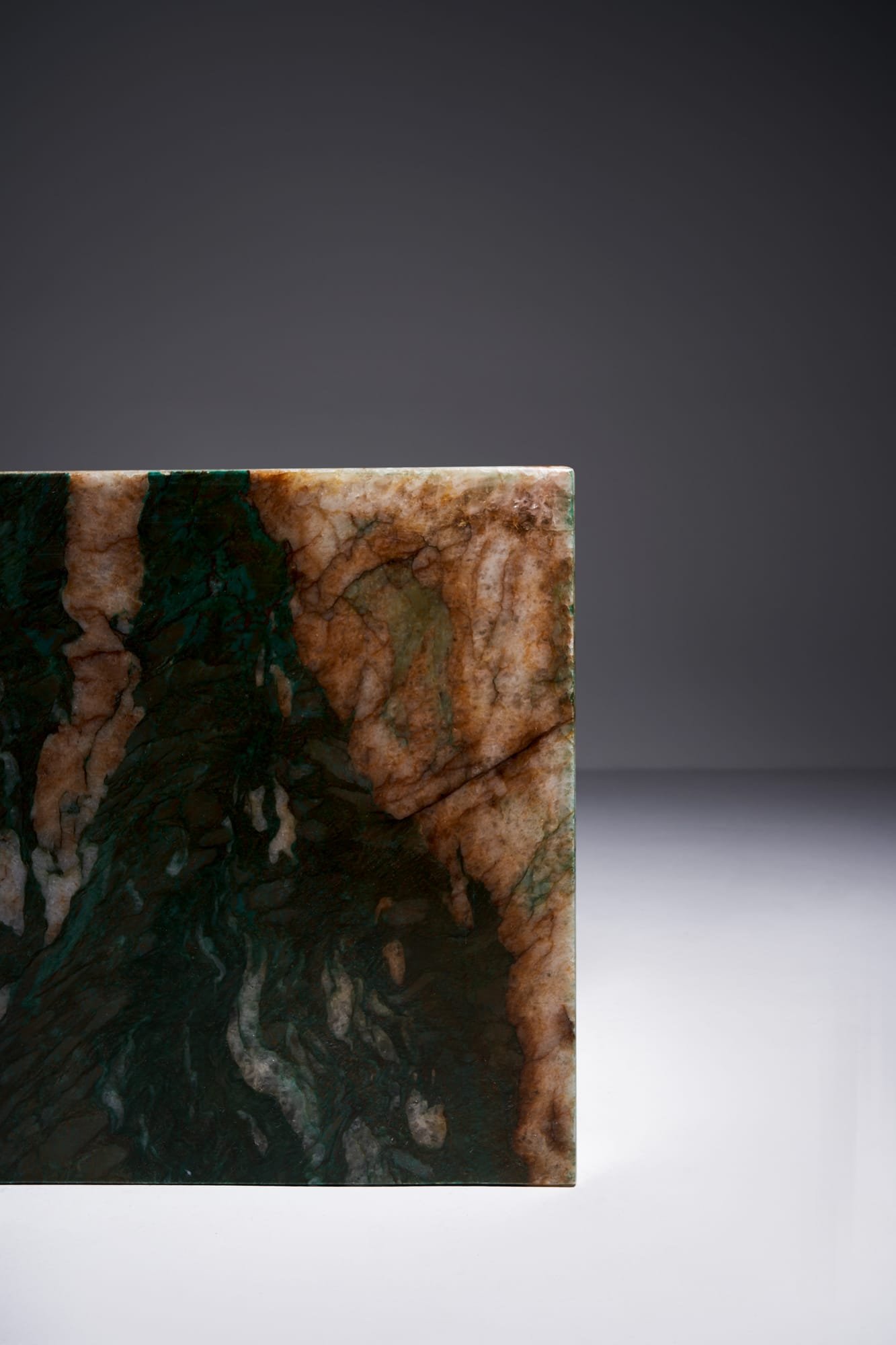 The Keeper – a piece of furniture that combines aesthetic elegance, minimalist charm, and impressive character while also providing practical functionality. This makes it a valuable addition to any living space. The marble cube is made from 100% natural stone and stands out with its 2 – 2.5 cm thick slabs. The Keeper seamlessly functions as a side table, coffee table, or captivating art piece, and its generous surface offers ample space to showcase significant objects or stand elegantly on its own.