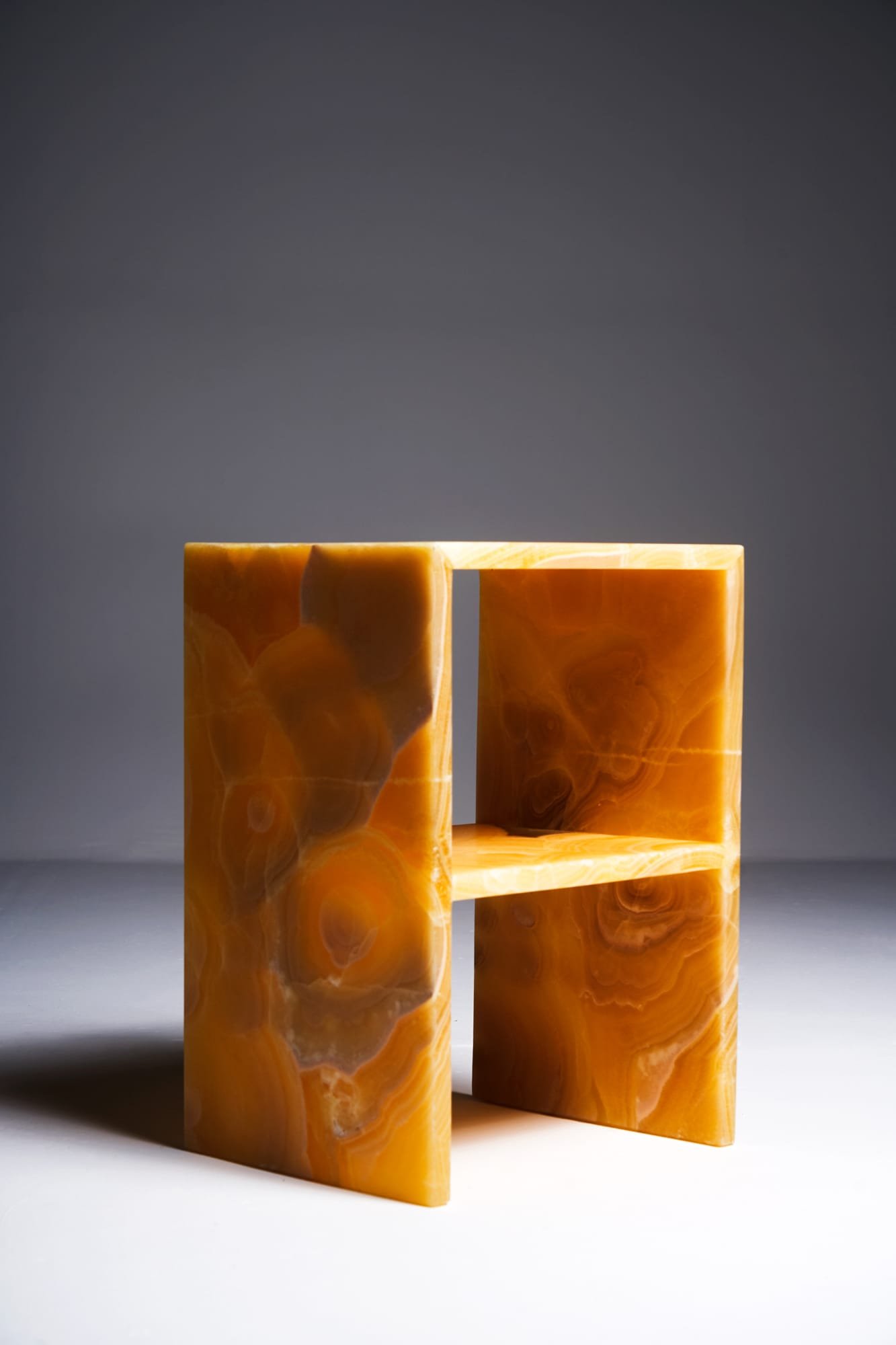 Warm tones, a soft glow and a serene presence – the Sideliner in Onyx Miel balances natural beauty with refined simplicity. Its clear, minimalist lines meet a richly layered stone full of honey-colored depth and semi-transparency. Crafted from 100% natural Onyx with a slab thickness of 2 to 2.5 cm, each piece is hand-finished and one of a kind. The expressive patterning of the stone makes every Sideliner unique. Whether placed next to a bed or as a sculptural sidetable in a living room, the Sideliner in Onyx Miel brings warmth, texture and craftsmanship into any space.