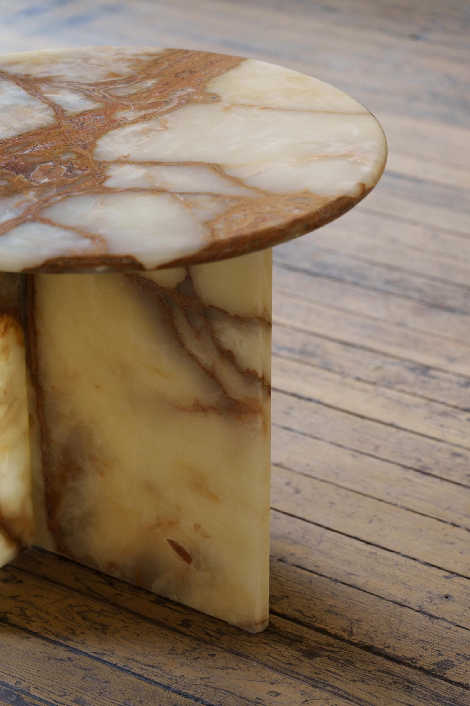 The Roundtable stands out with its round surface and distinctive cross-shaped base, offering new visual facets depending on the perspective. This minimalist design piece combines timeless elegance with functionality, featuring 100% natural stone with a slab thickness of 2 to 2.5 cm. Versatile as a side table or a statement piece in an entryway, the Roundtable creates a harmonious and sophisticated atmosphere in any space.