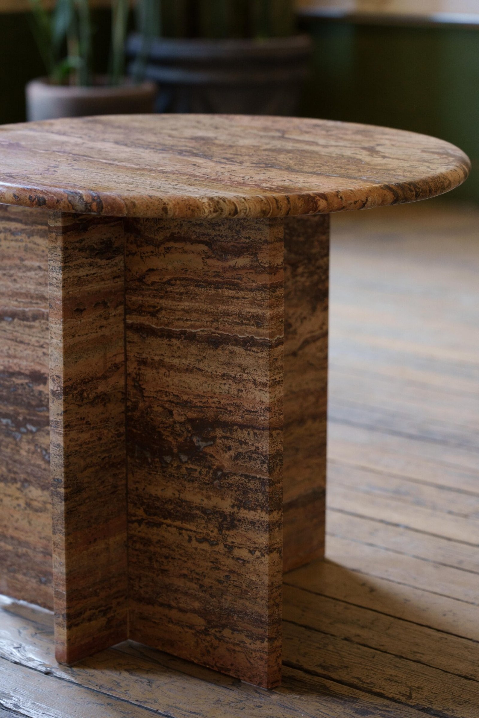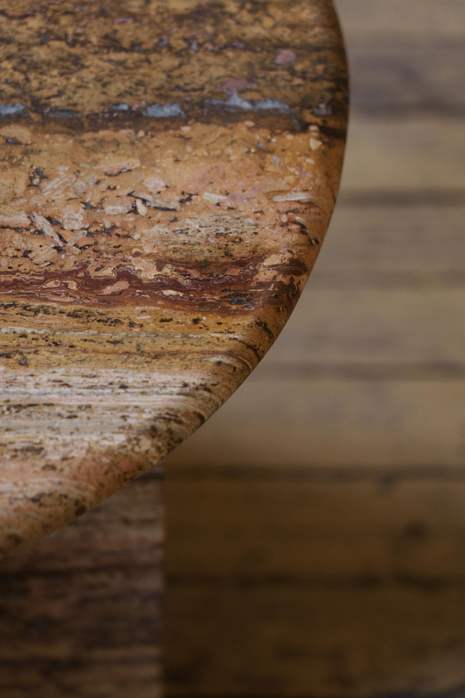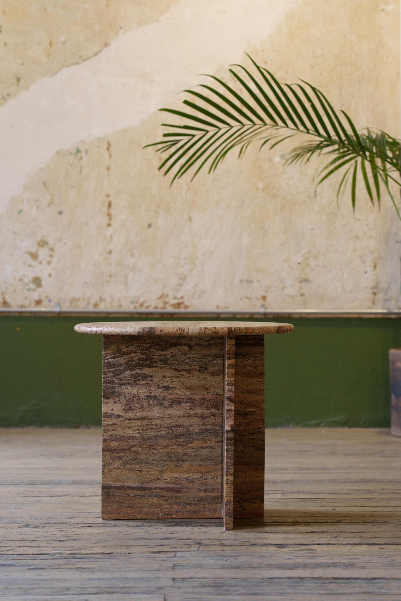 The Roundtable stands out with its round surface and distinctive cross-shaped base, offering new visual facets depending on the perspective. This minimalist design piece combines timeless elegance with functionality, featuring 100% natural stone with a slab thickness of 2 to 2.5 cm. Versatile as a side table or a statement piece in an entryway, the Roundtable creates a harmonious and sophisticated atmosphere in any space.